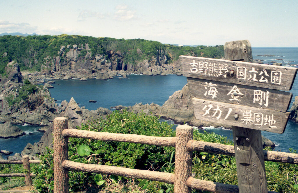 日米修交記念館の近くにある展望台より「海金剛」 案内板が邪魔ですね